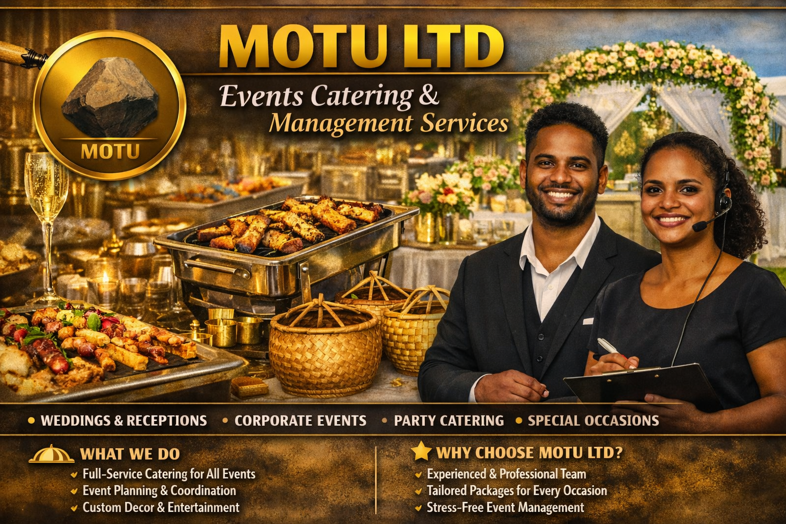 MOTU LTD delivers professional catering and event management solutions that blend Melanesian hospitality with modern excellence. From weddings to corporate functions, we ensure every occasion is beautifully planned, flawlessly executed, and truly memorable.