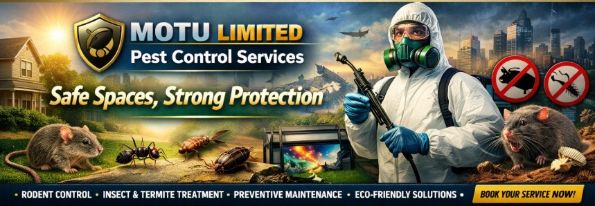 MOTU LIMITED delivers safe, effective, and professional pest control solutions designed to protect workplaces, homes, and institutions. Our expert team uses modern methods and eco-friendly treatments to eliminate pests while ensuring long-term prevention.